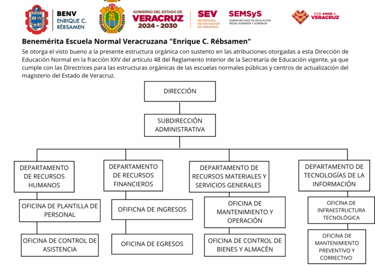La Subdirección Administrativa de la Benemérita Escuela Normal Veracruzana “Enrique C. Rébsamen” (BENV) es un pilar fundamental en la gestión operativa y administrativa de la institución, apoyando a la Dirección en la administración eficiente de recursos y procesos para garantizar el funcionamiento óptimo de la escuela. A continuación, se resumen sus principales funciones, basadas en el contexto de las escuelas normales en México: